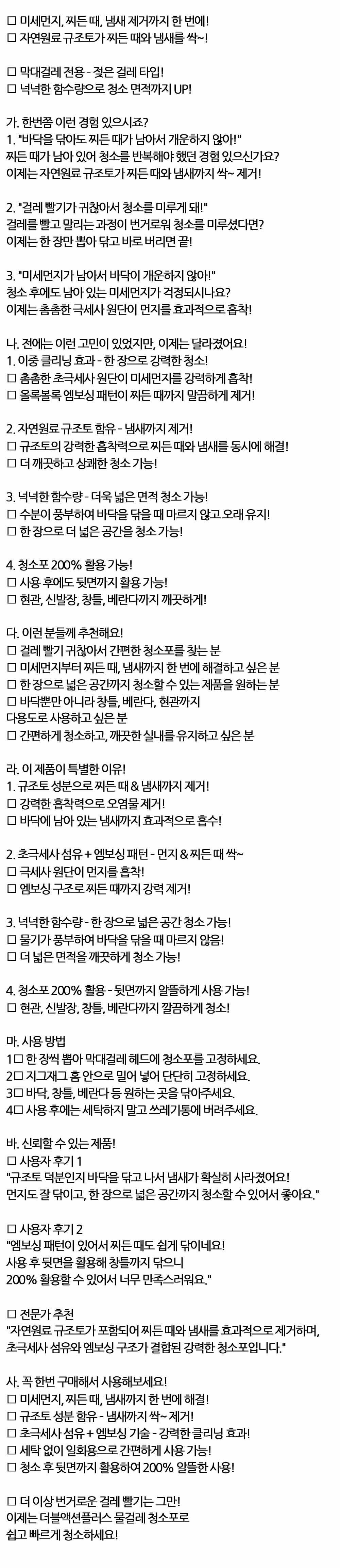 바닥 닦고 나서 냄새가 사라졌어요 물걸레청소포 20매