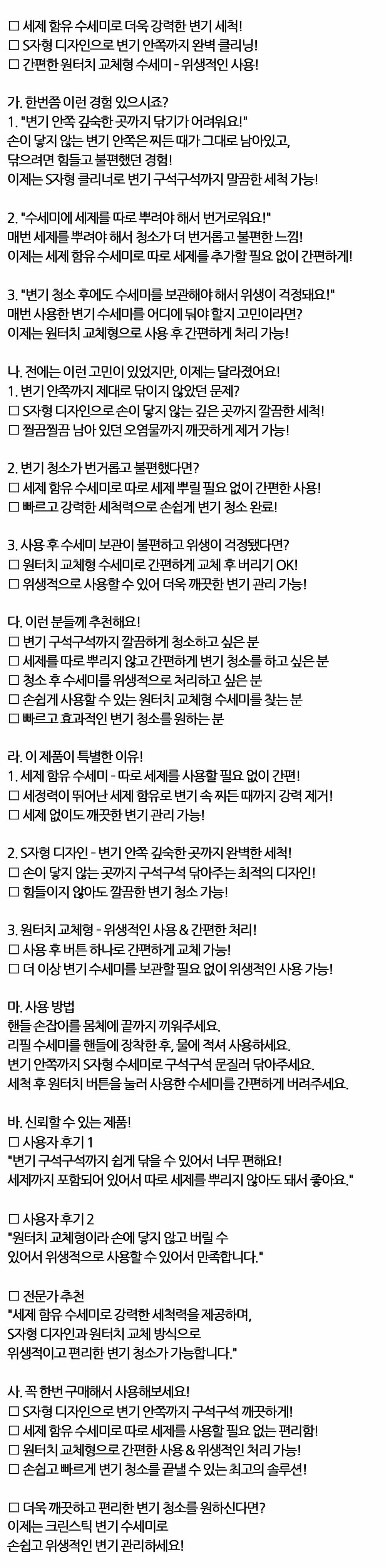 S자형 구석구석 세척 변기수세미 핸들 1입 리필 1입