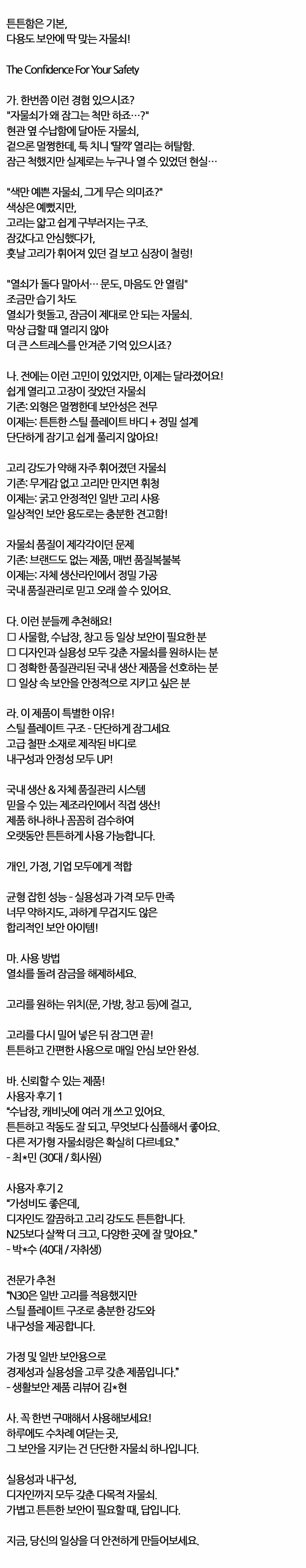 단단하게 잠기고 쉽게 풀리지 않아요 철판자물쇠 N30