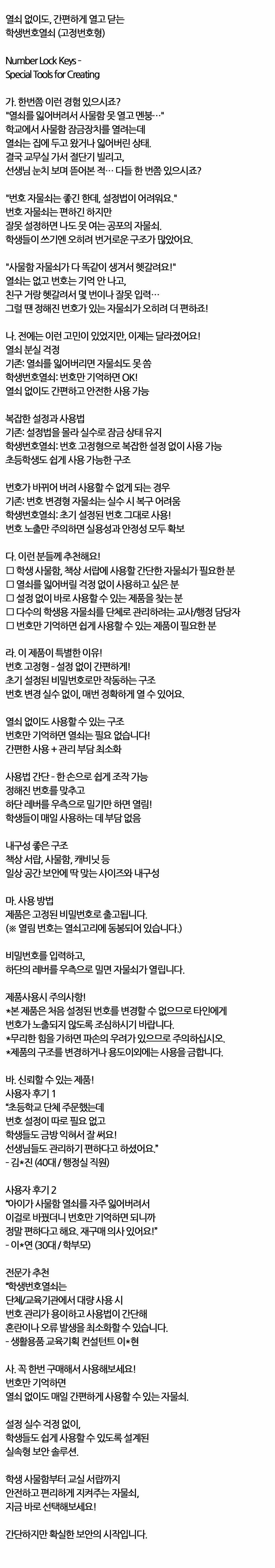 번호 변경없이 사용하는 번호고정형 학생번호열쇠 대