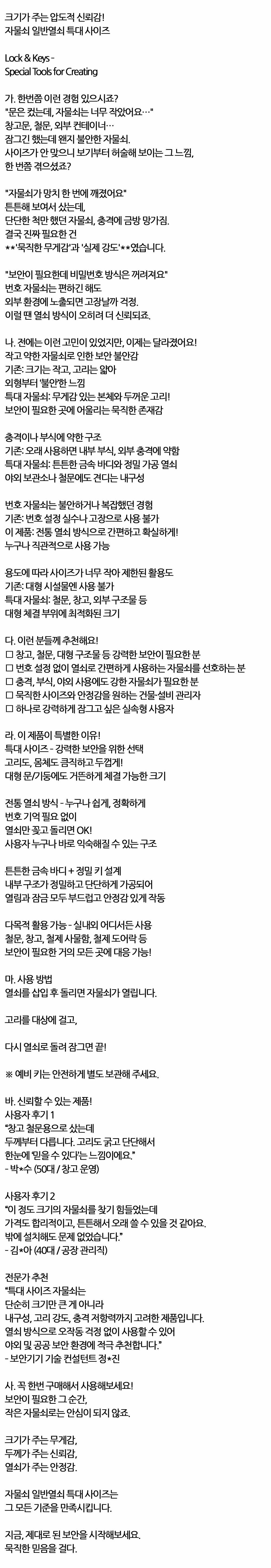 열쇠로 간편하게 사용 묵직한 자물쇠 일반열쇠 특대