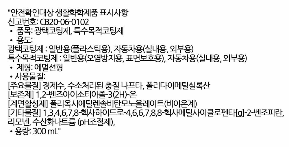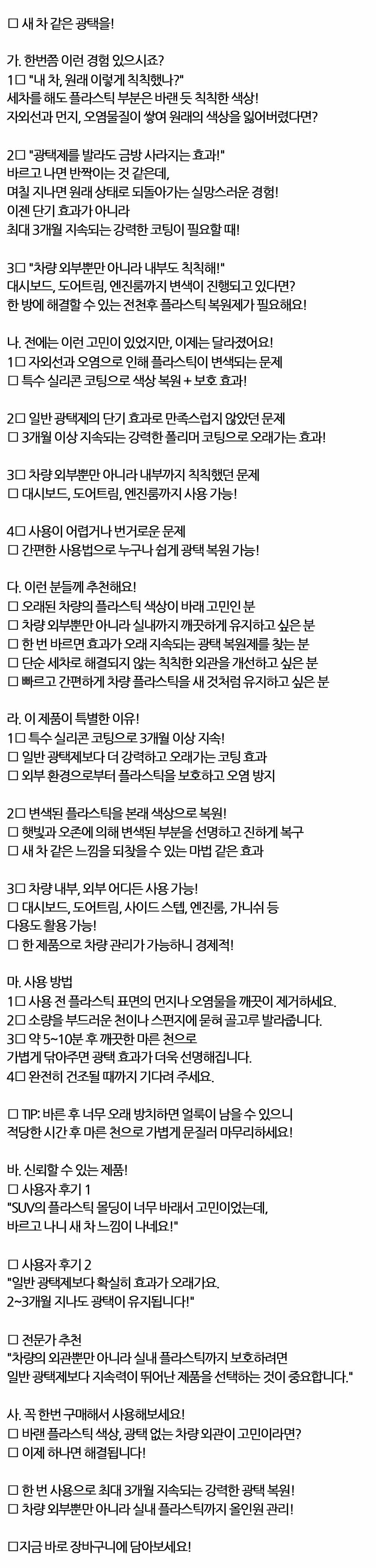 바랜 플라스틱 색상 광택 없는 차량외관 복원제 300ml