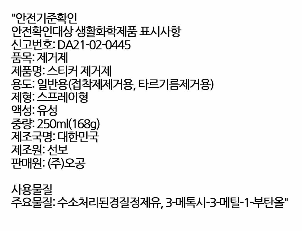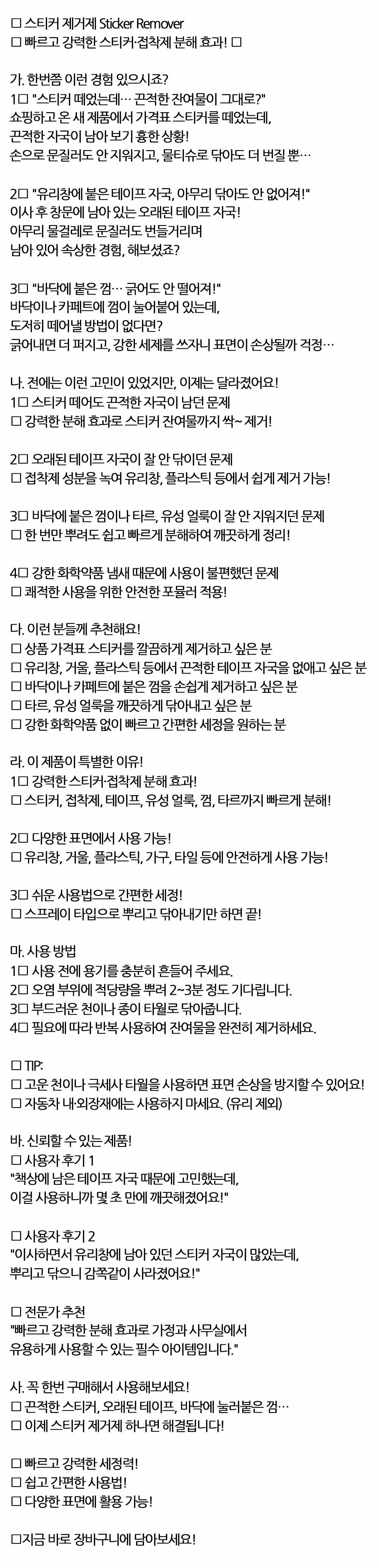 오래된 자국이 잘 안 닦이던 문제 스티커제거제 250ml
