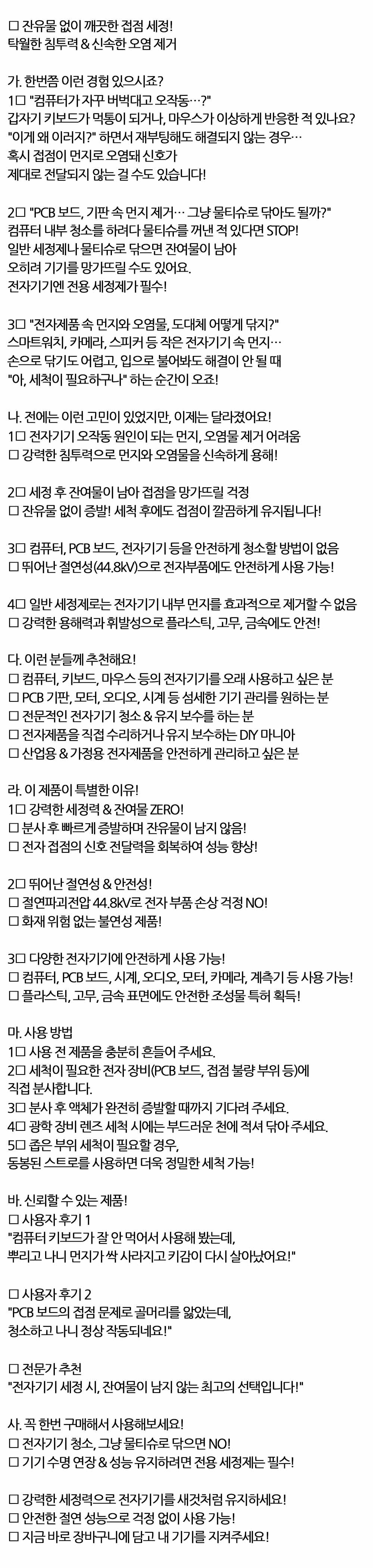 전자기기 오작동 원인 먼지 오염물 제거 세정제 225g