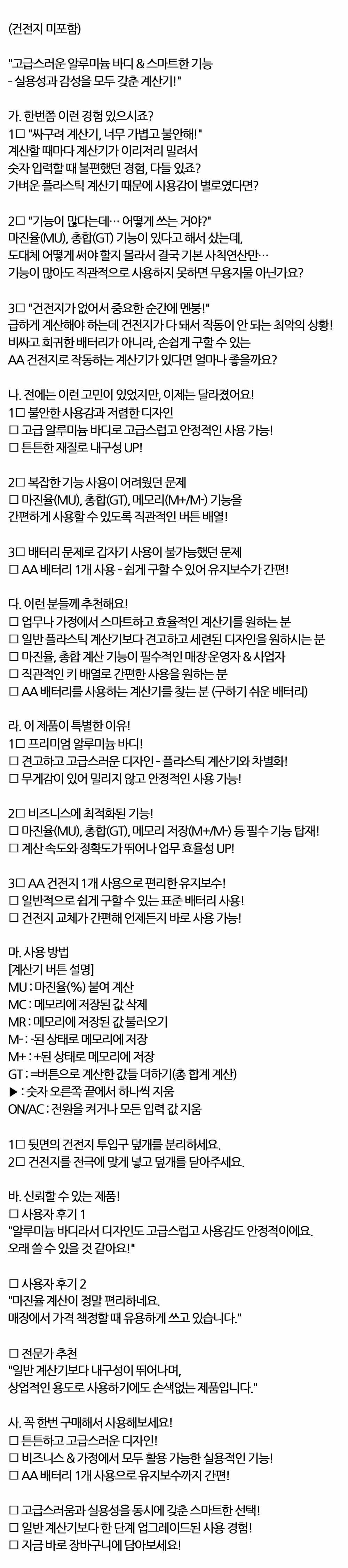 아래 상품정보는 옵션 및 사은품 정보 등 실제 상품과 차이가 있을수 있습니다