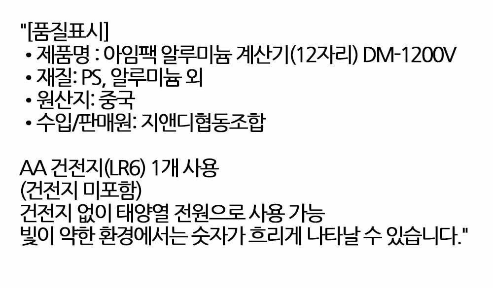 AA 배터리 1개 사용으로 유지보수 간편 12자리 계산기