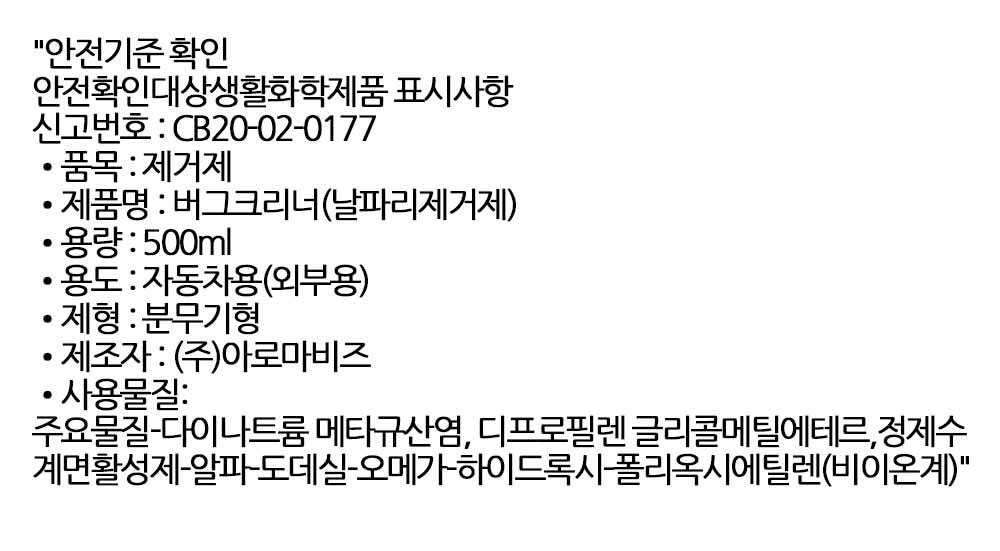 고속도로 주행후 벌레폭탄 간편제거 버그크리너 500ml