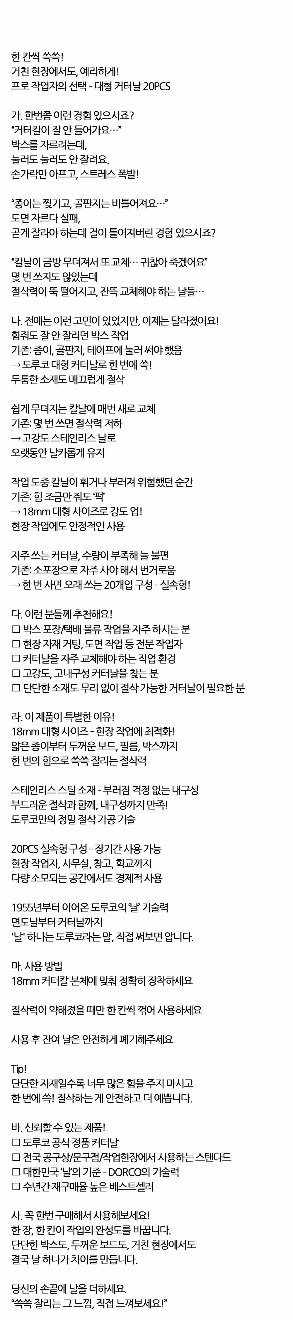 거친 현장에서 예리하고 매끄럽게 대형 커터칼날 20입