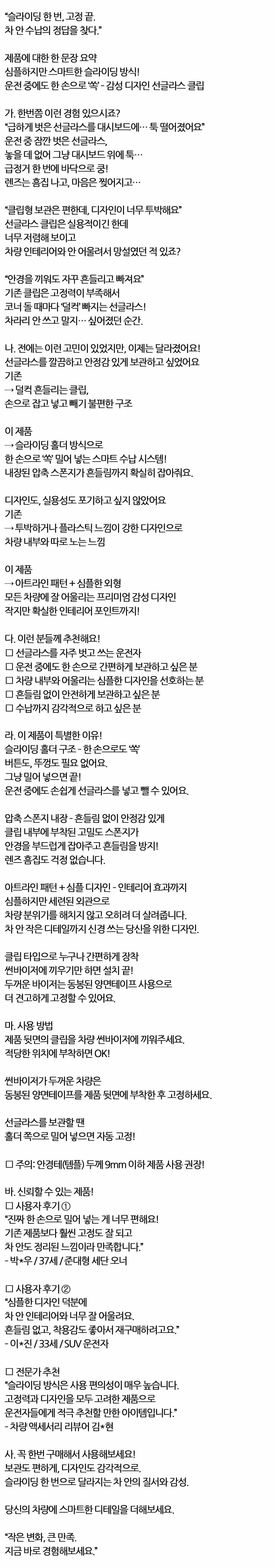 심플하지만 스마트한 슬라이딩방식 차량 선글라스클립