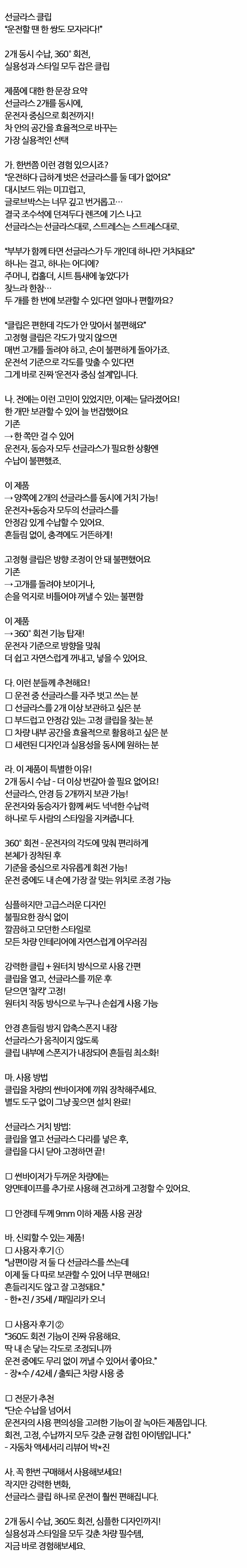 양쪽에 2개의 선글라스를 동시거치 차량 선글라스클립