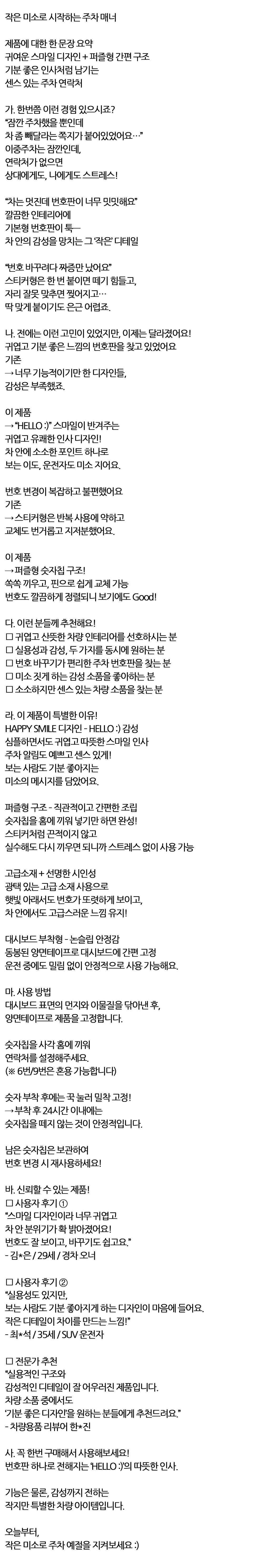 귀여운 스마일 디자인 퍼즐형 간편 구조 주차알림판