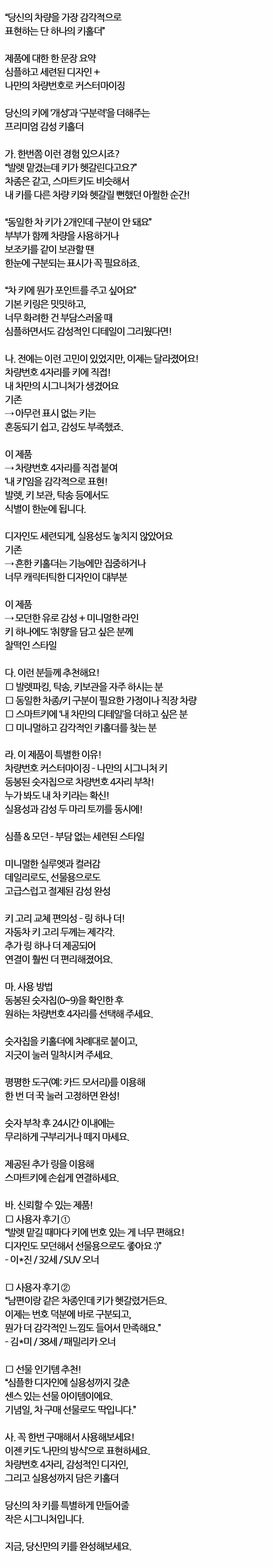 심플하고 세련된 디자인 나만의 차량번호 감성 키홀더