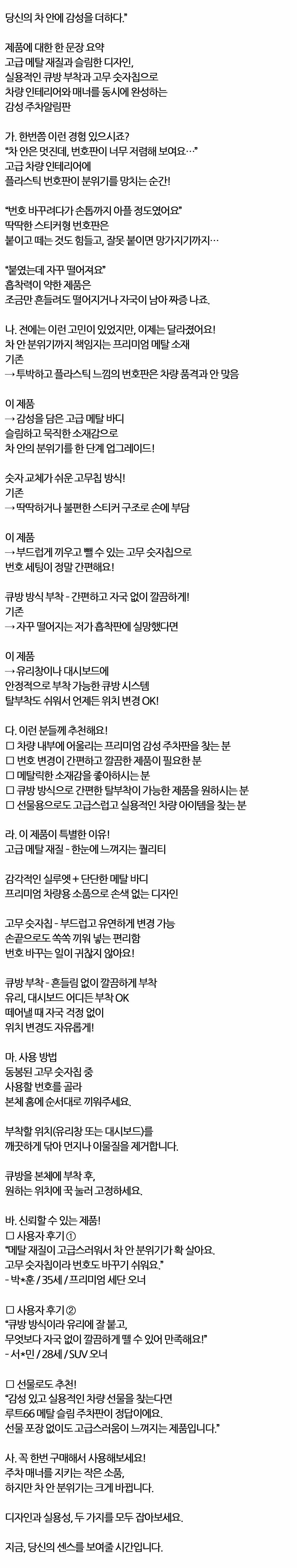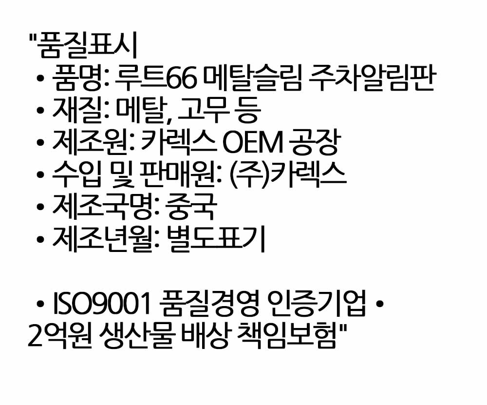 차량 내부에 어울리는 프리미엄 메탈슬림 주차번호판