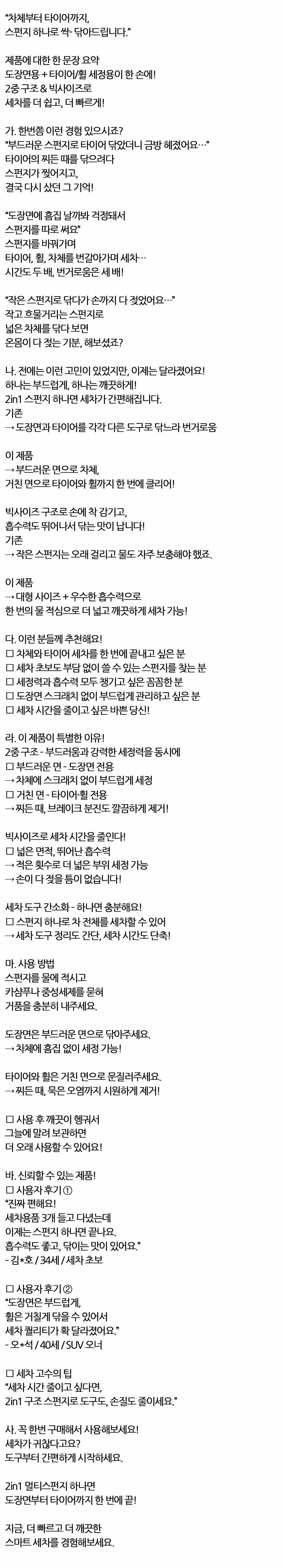 차체부터 타이어까지 스펀지 하나로 싹 닦아드립니다