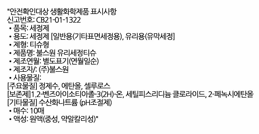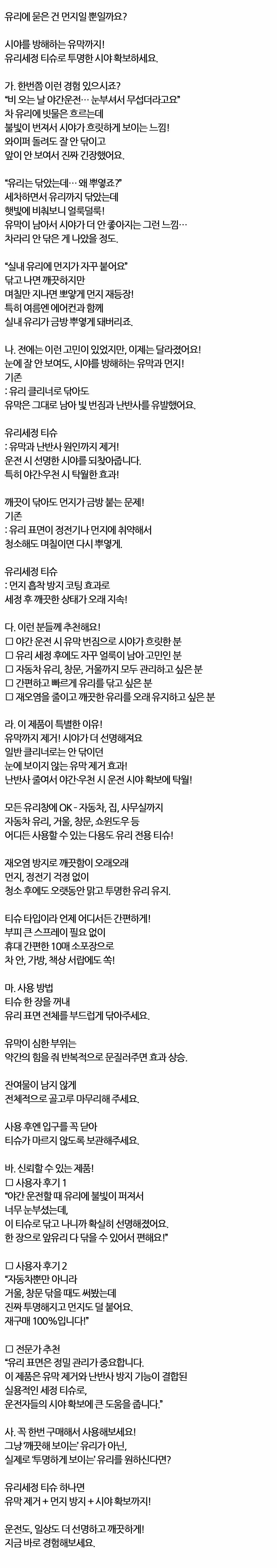 운전자의 안전한 시야확보 자동차 유리세정 티슈 10매