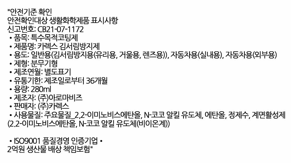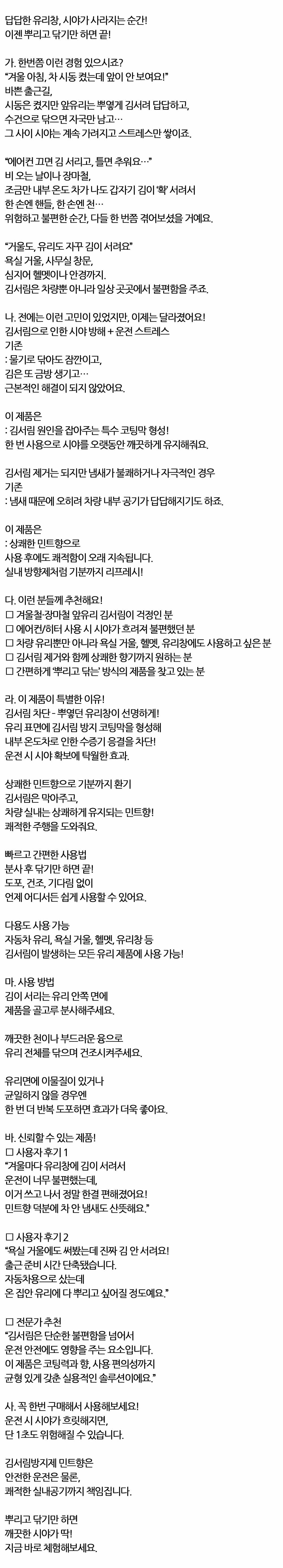 답답한 유리창 시야 사라지는순간 김서림방지제 280ml