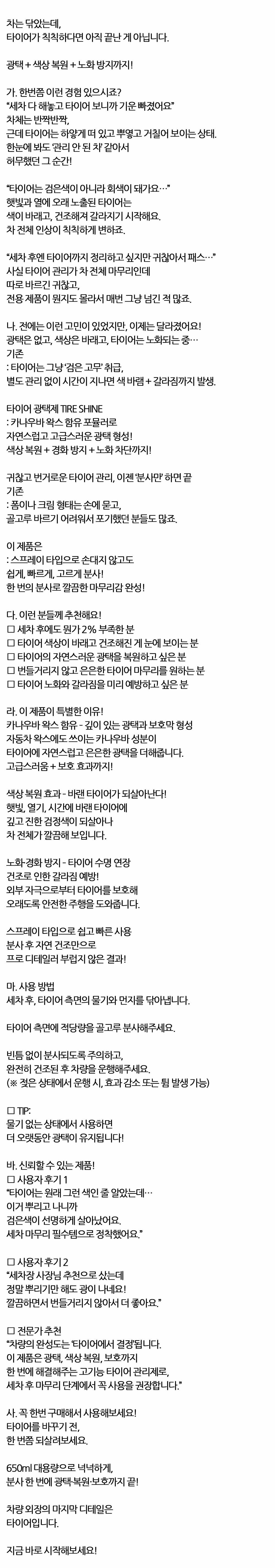 차를 아무리 세차해도 칙칙한 타이어용 광택제 650ml