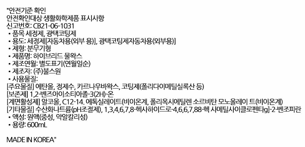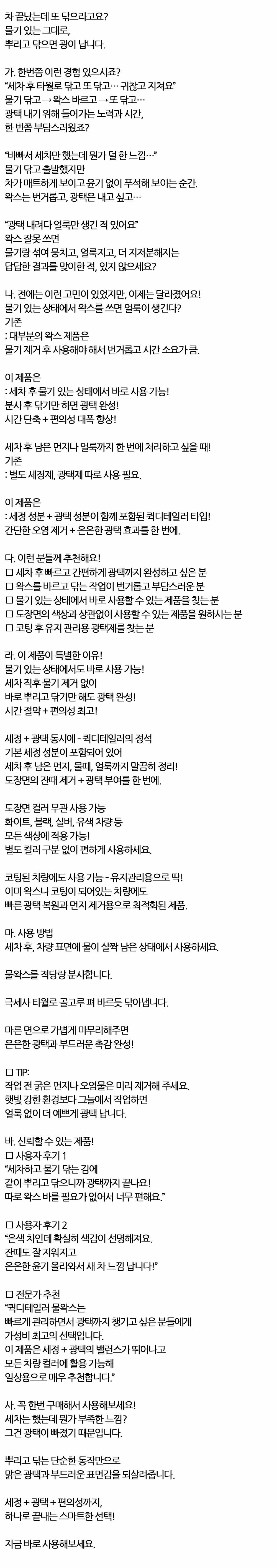 세차 끝났는데 또 닦으라고요 간편하게 물왁스 600ml