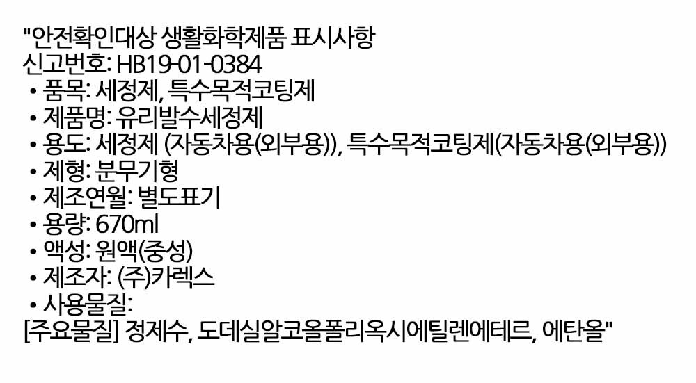 세정 발수코팅을 동시에 한 번에 끝내는 세정제 670ml