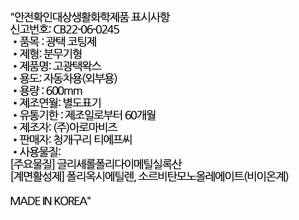 빛나는 자동차에는 이유가 있습니다 고광택왁스 600ml