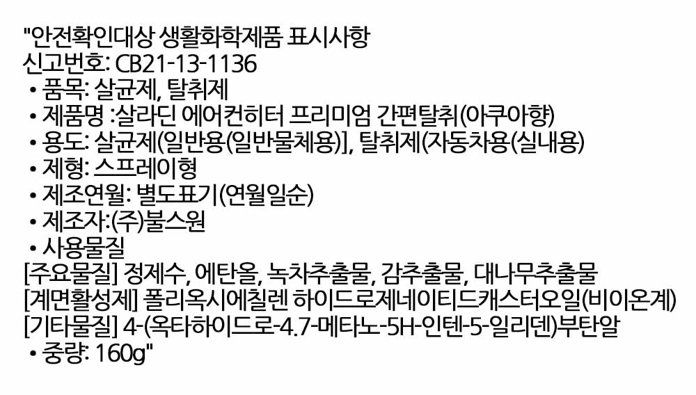 에어컨 켤때마다 올라오는 냄새 아쿠아향 탈취제 160g