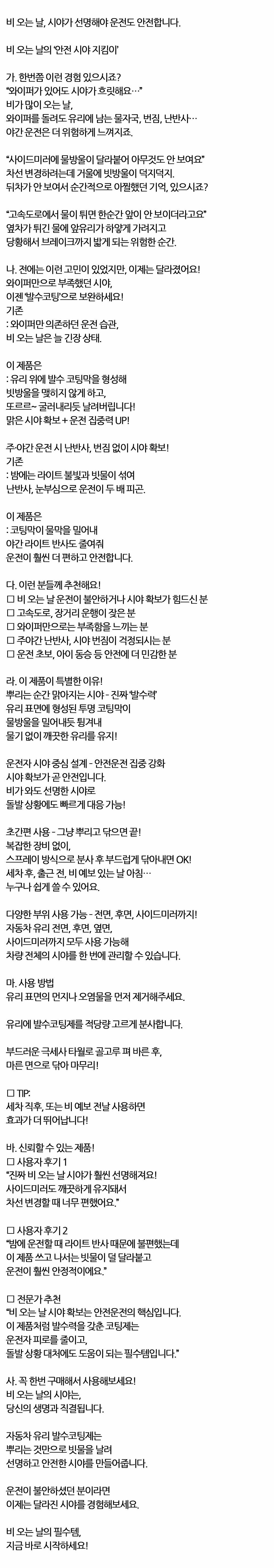 시야 선명해야 운전도 안전합니다 유리발수코팅 270g