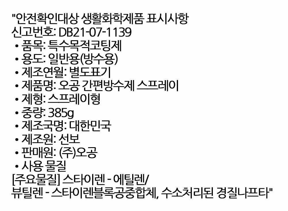 뿌리는 것만으로 셀프 완성 방수 스프레이 투명 550ml
