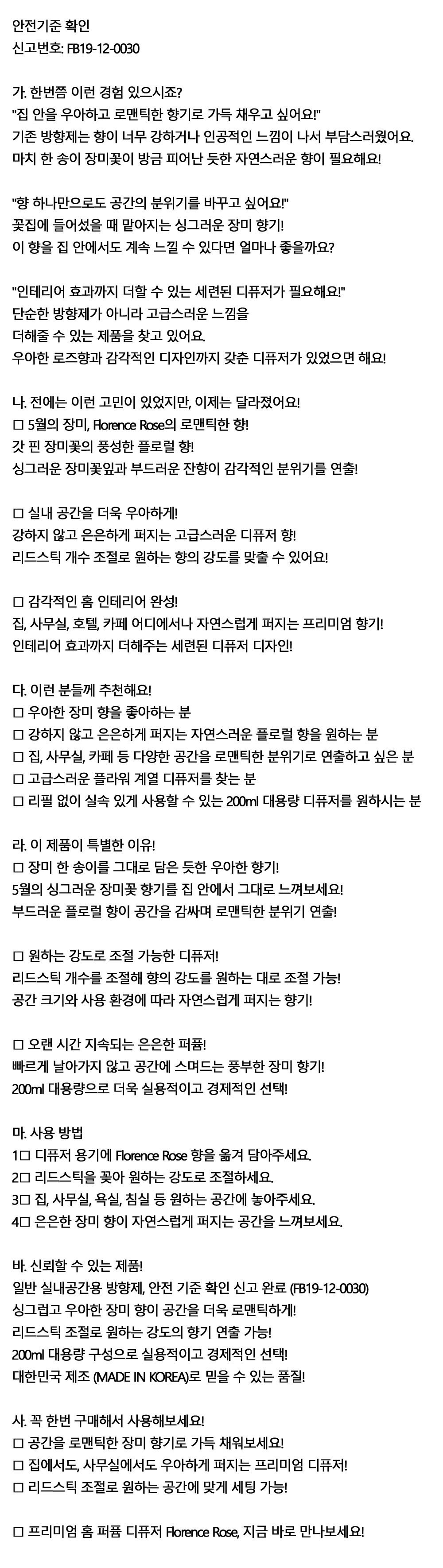 갓 핀 장미꽃의 풍성한 플로럴 향 디퓨저 로즈 200ml