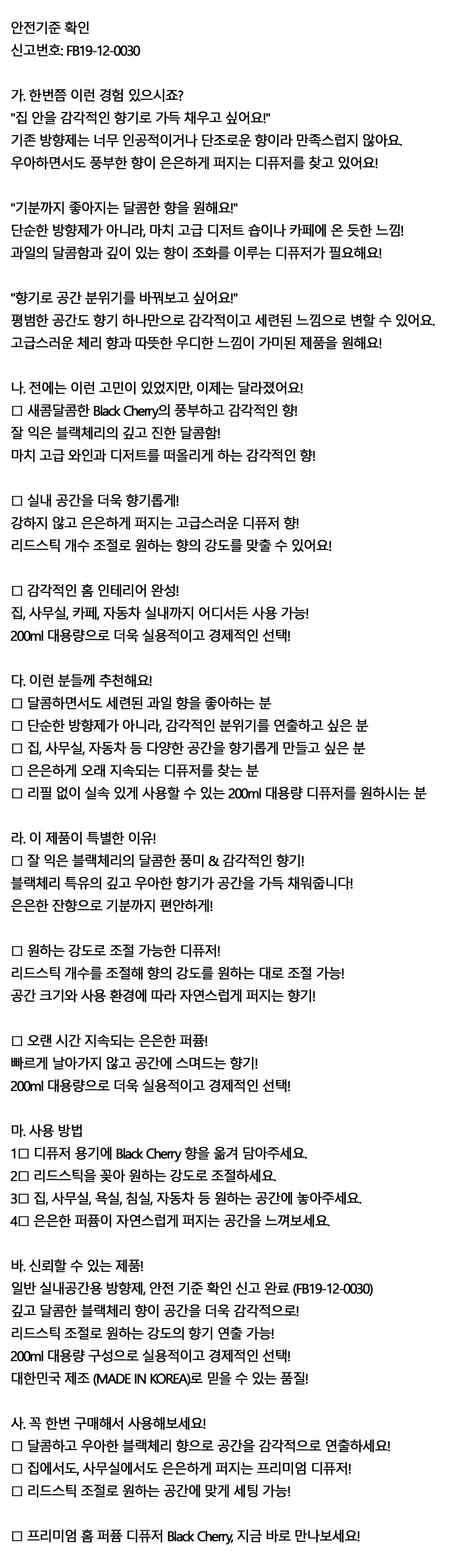 잘 익은 블랙체리 달콤한 풍미 감각적인 디퓨저 200ml