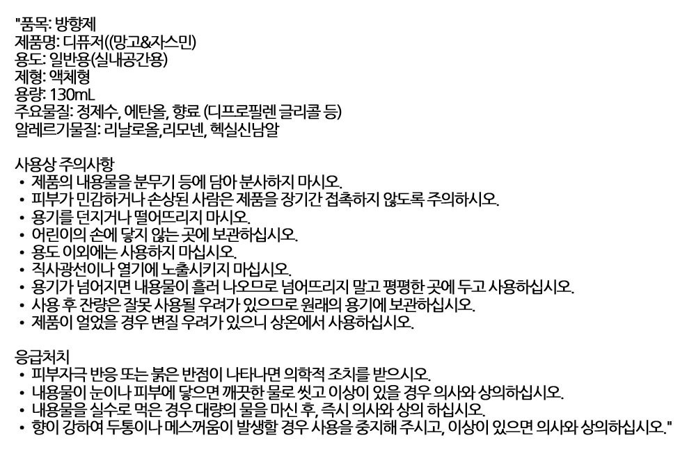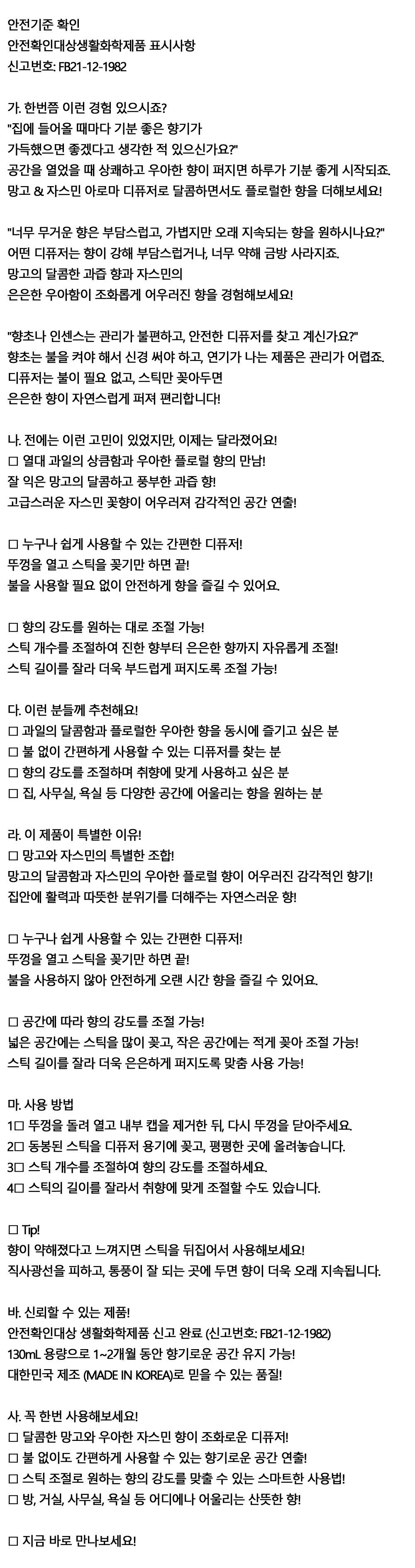 망고의 달콤한 과즙향 자스민의 우아함 디퓨저 130ml