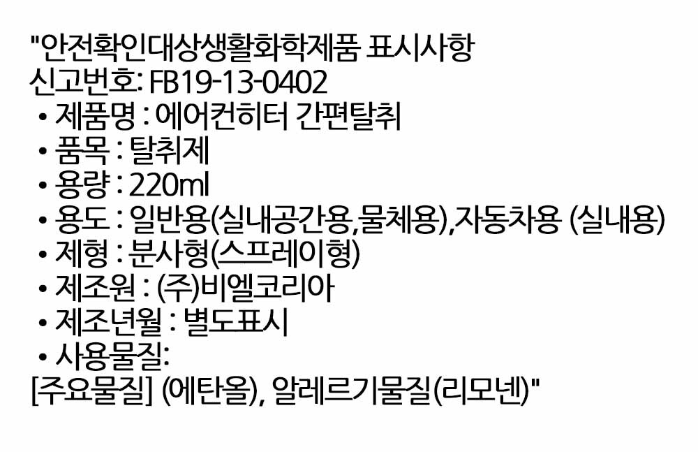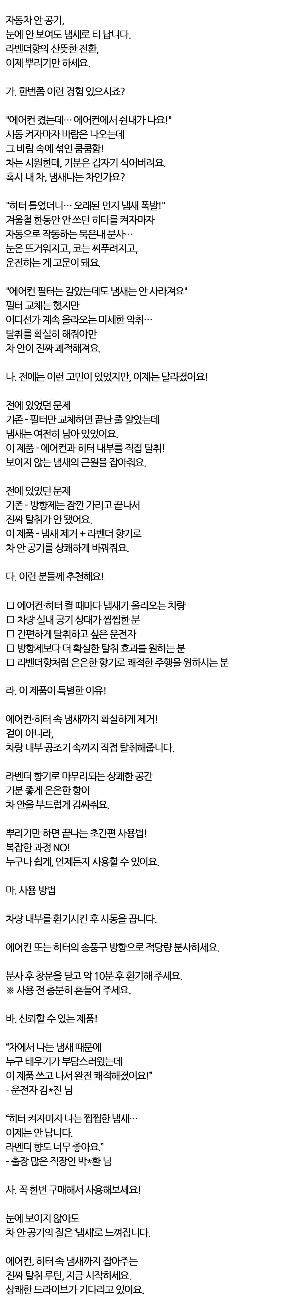 자동차 안 공기 냄새로 티납니다 에어컨 탈취제 220ml