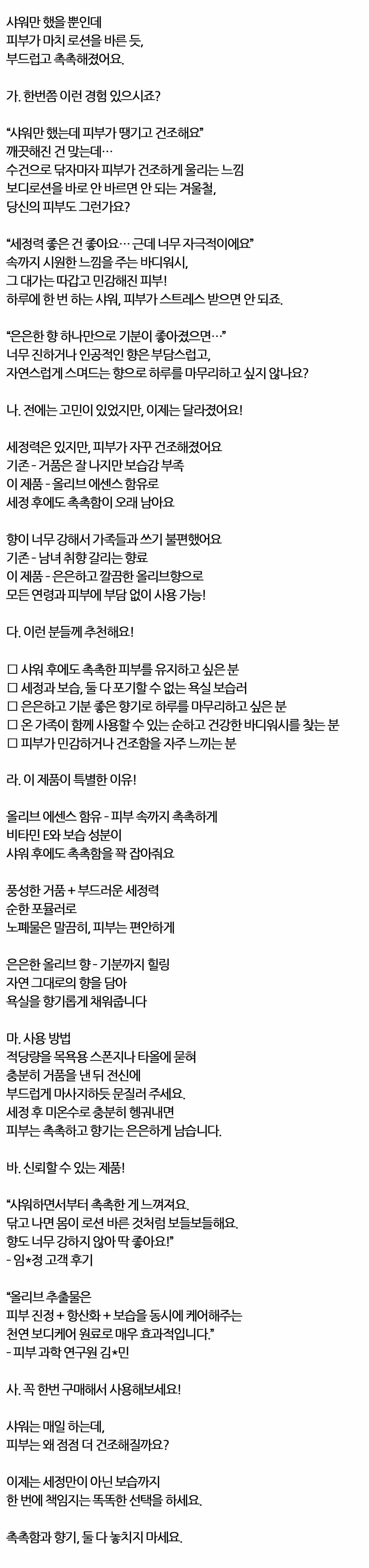 세정후에도 촉촉함 오래 남아요 올리브 바디워시 500g