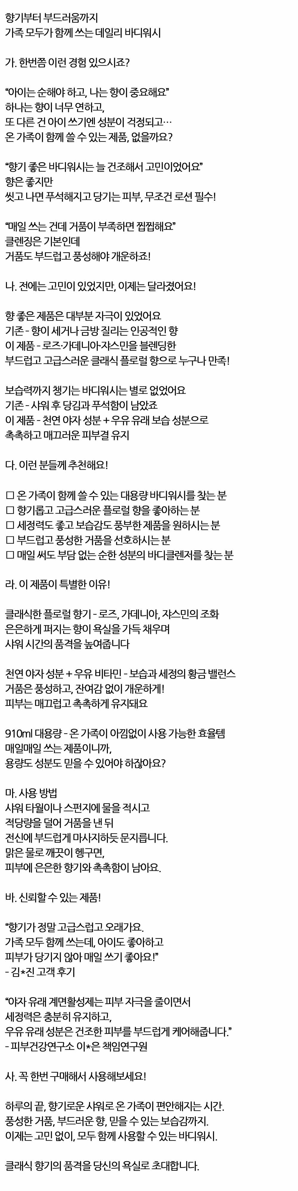 로즈 가데니아 쟈스민을 블렌딩한 바디워시 910ml