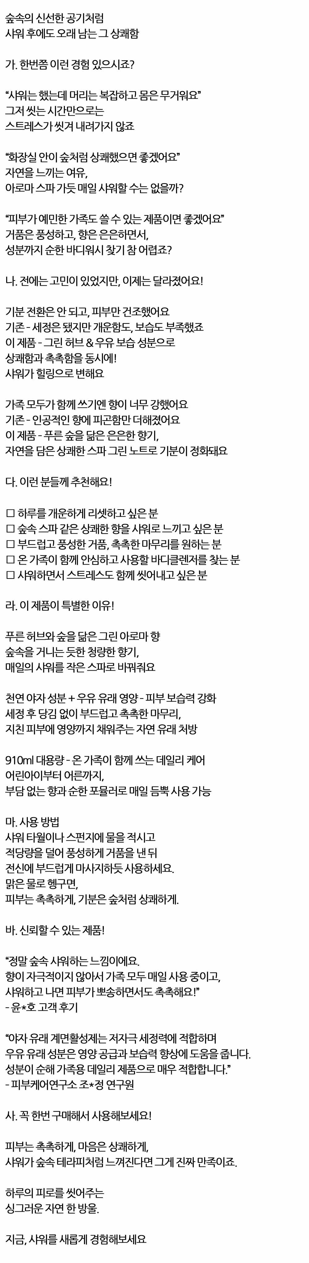 자연을 담은 푸른 숲속의 신선한 공기 바디워시 910ml