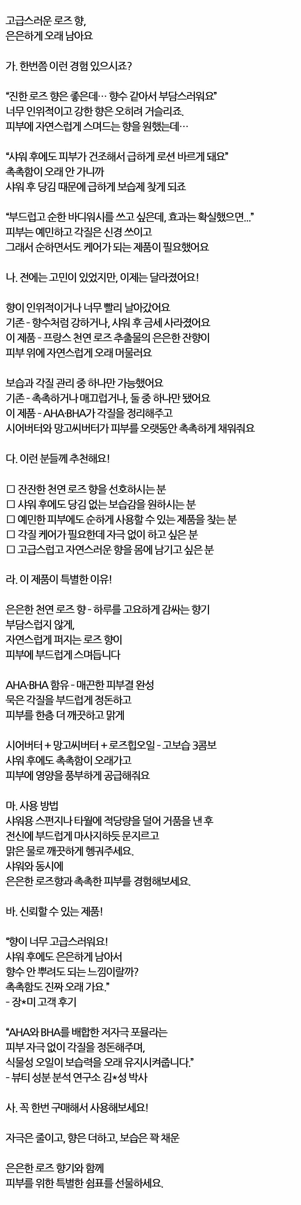 고급스러운 로즈 향 은은하게 오래 바디워시 1000ml