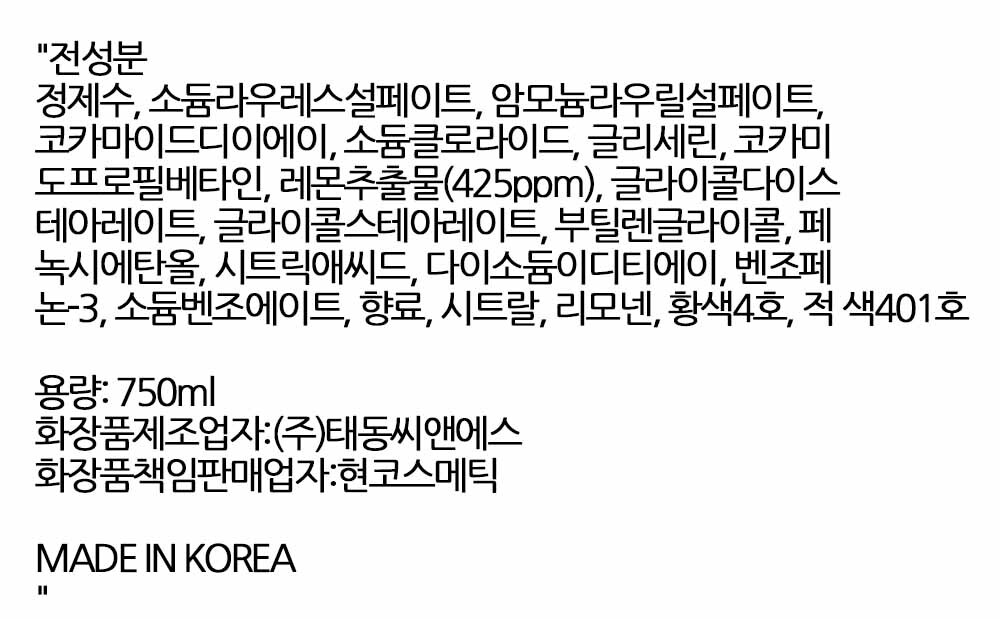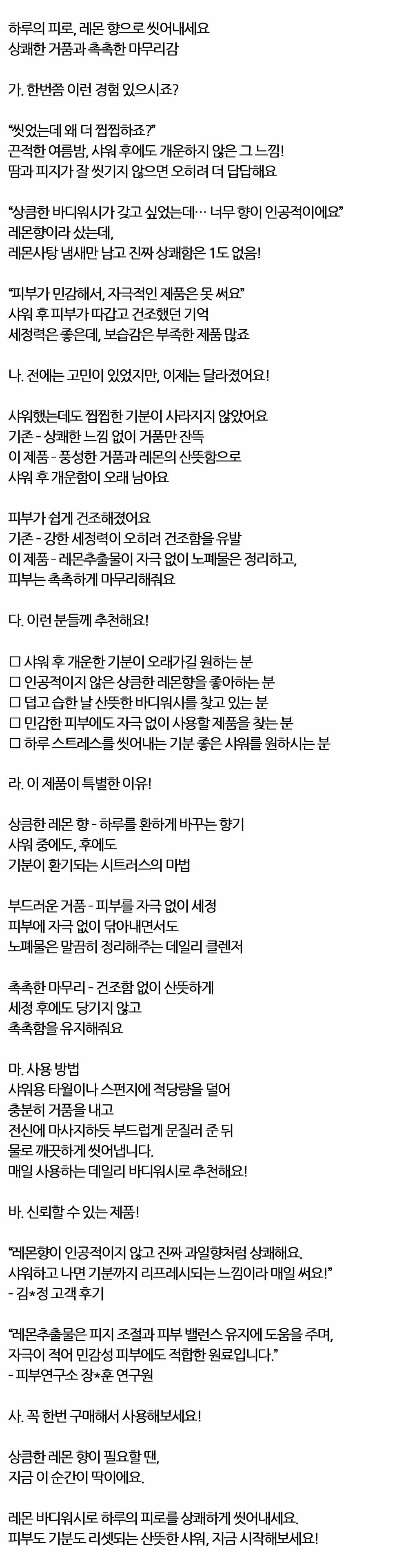 개운함이 오래 남아요 레몬의 산뜻함 바디워시 750ml