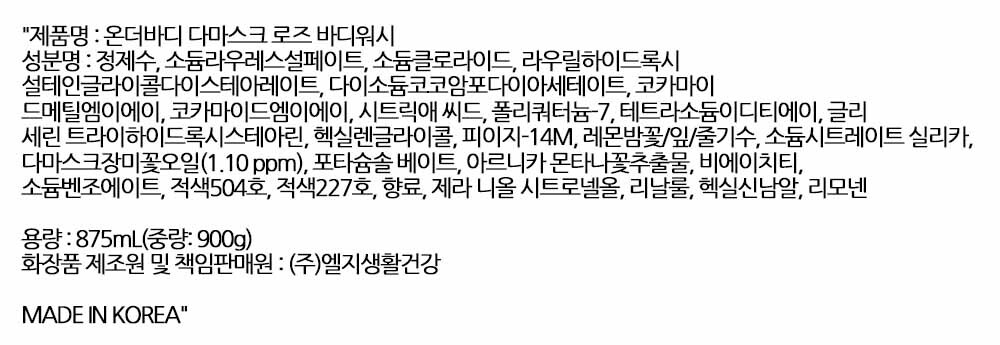 로즈의 우아함이 샤워순간을 꽃피우다 바디워시 875ml