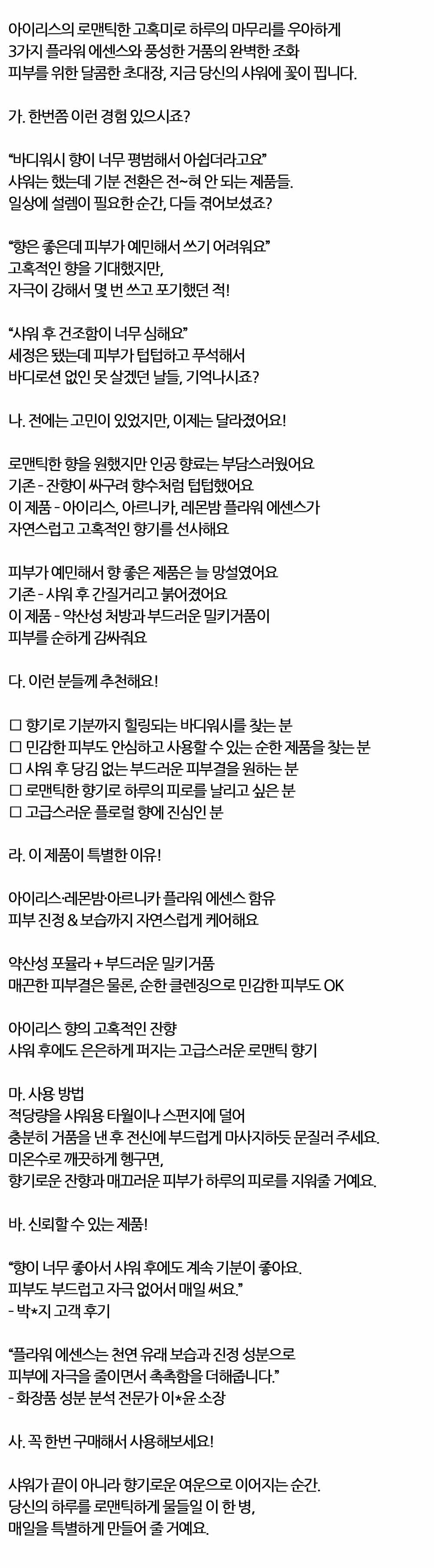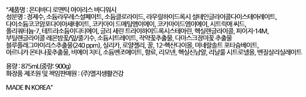 아이리스 향의 고혹적인 잔향 로맨틱 바디워시 875ml