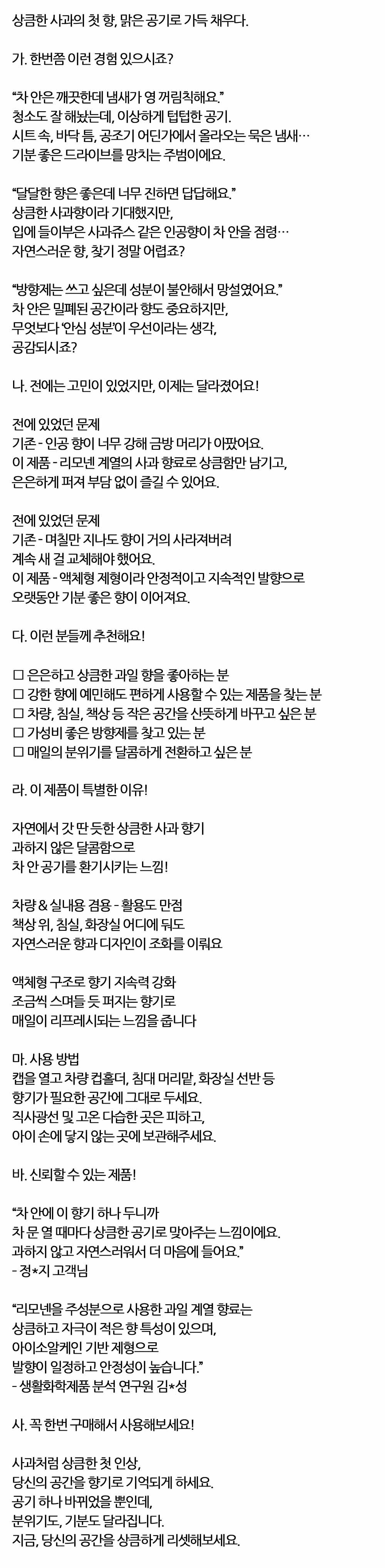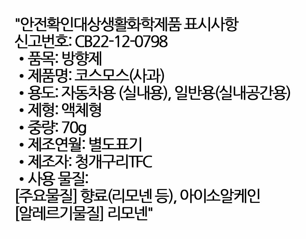 상큼한 사과향 맑은 공기로 채우다 자동차 방향제 70g