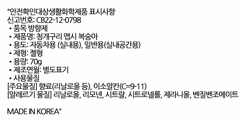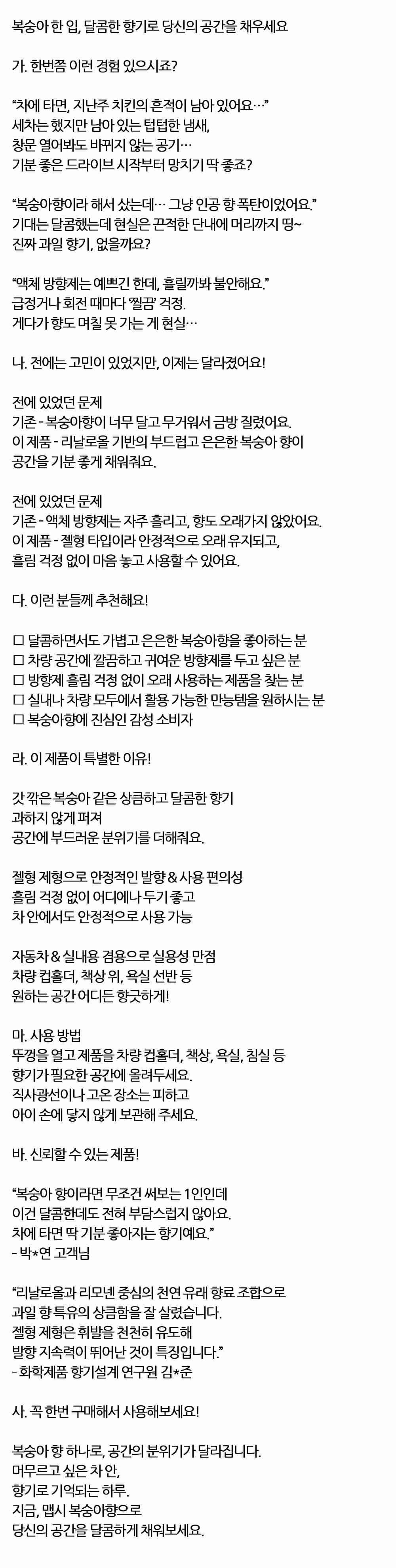 갓 깎은 복숭아 같은 상큼 달콤한 자동차 방향제 70g