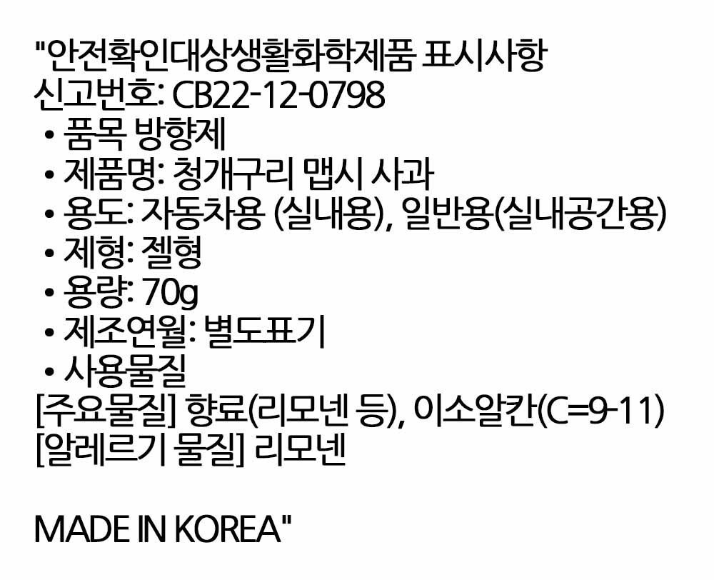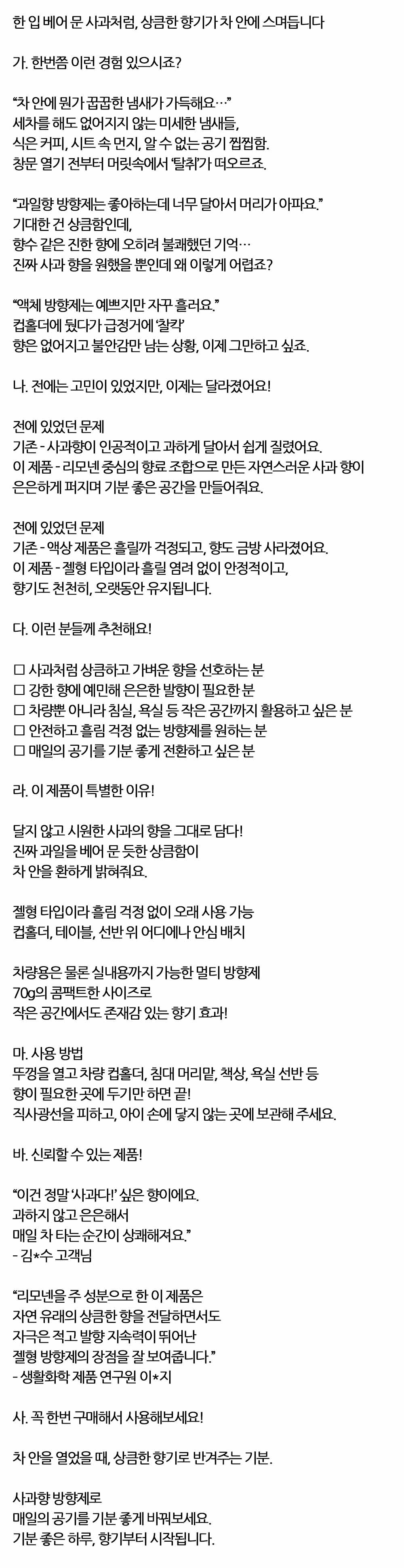 한 입 베어 문 사과처럼 상큼한 자동차 방향제 70g