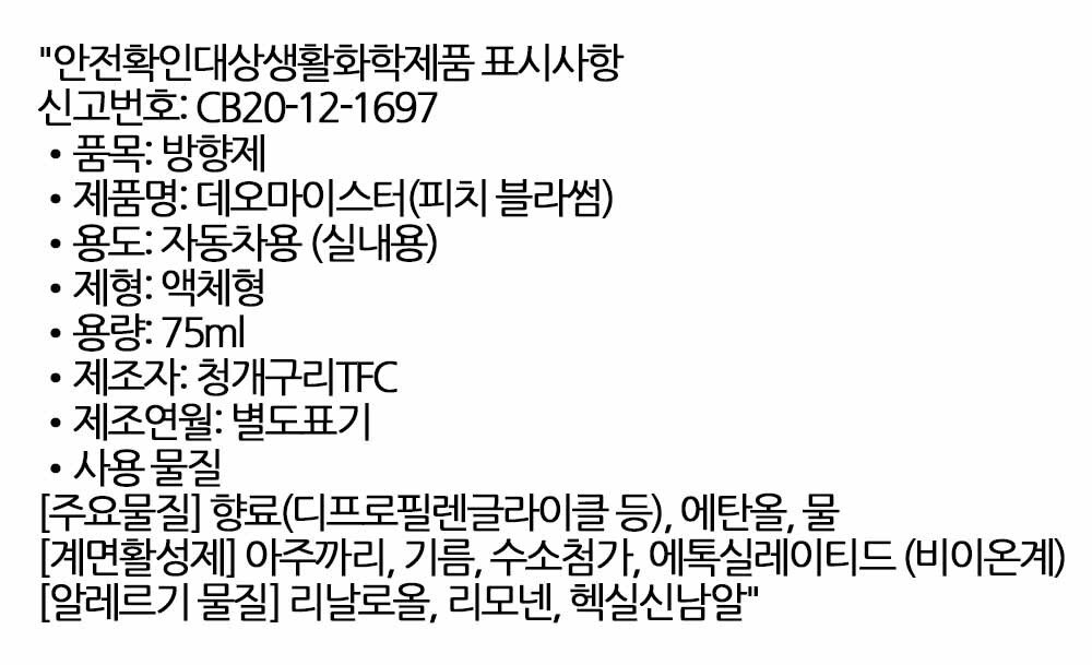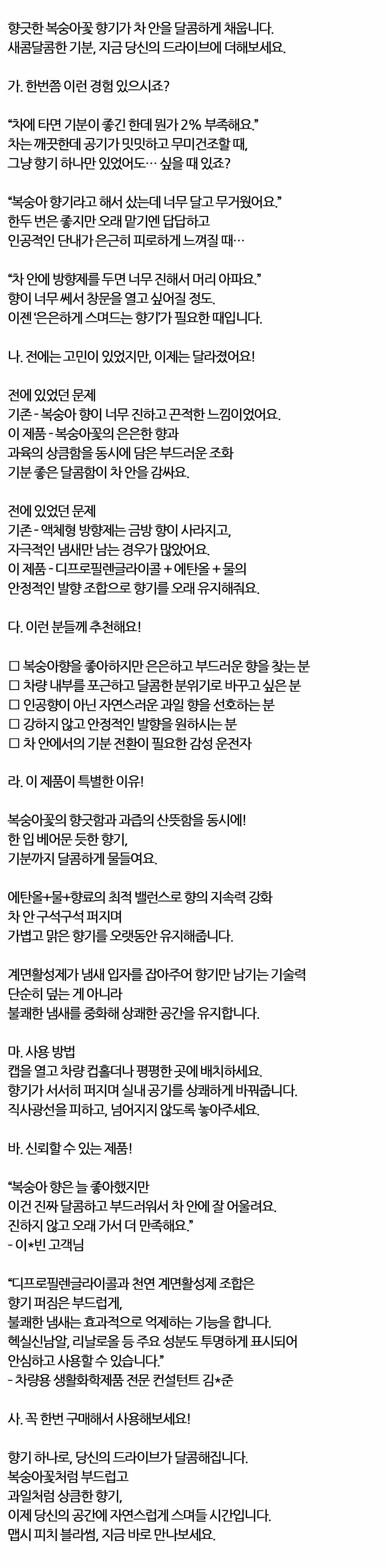 복숭아꽃향기 차 안을 달콤하게 채웁니다 방향제 75ml