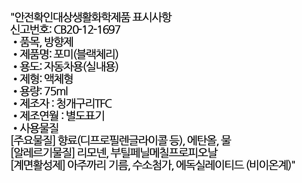 달콤함 속에 매력을 담은 블랙체리 자동차방향제 75ml