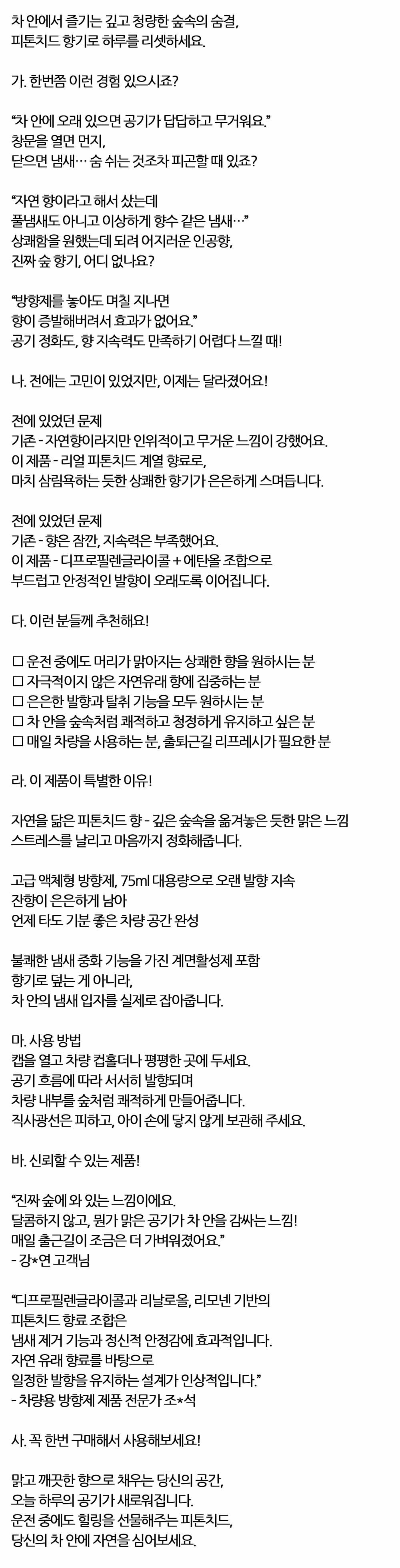 깊고 청량한 숲속의 숨결 피톤치드 자동차방향제 75ml