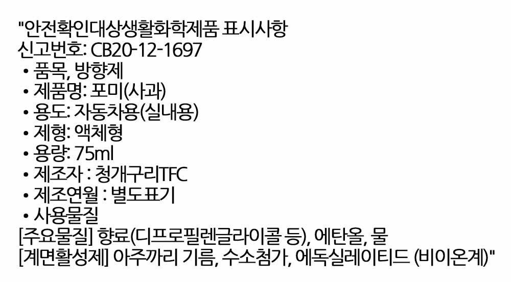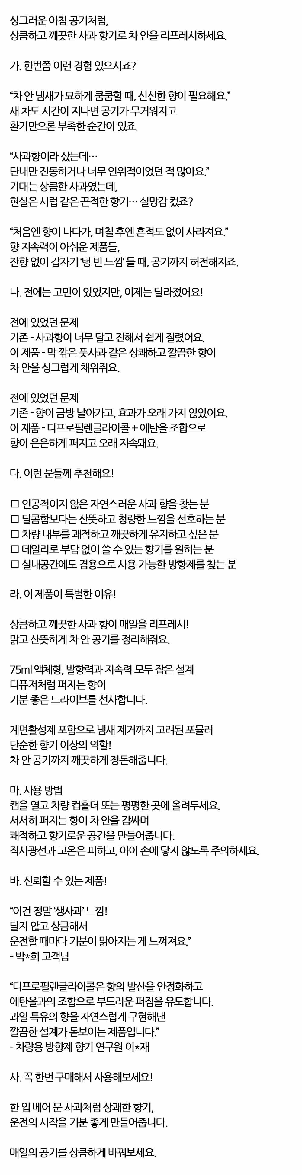 사과 향기로 차 안을 리프레시하세요 차량방향제 75ml