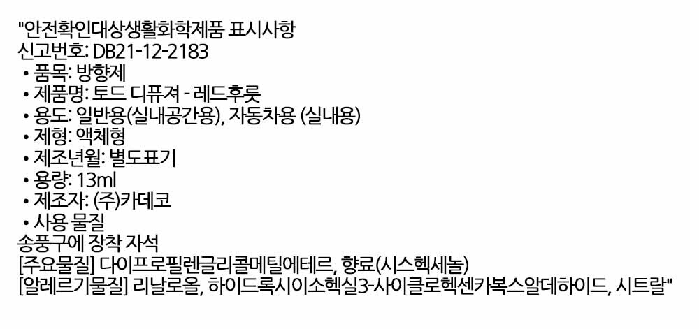 새콤달콤 열대과일 향기 자동차 송풍구형 디퓨져 13ml