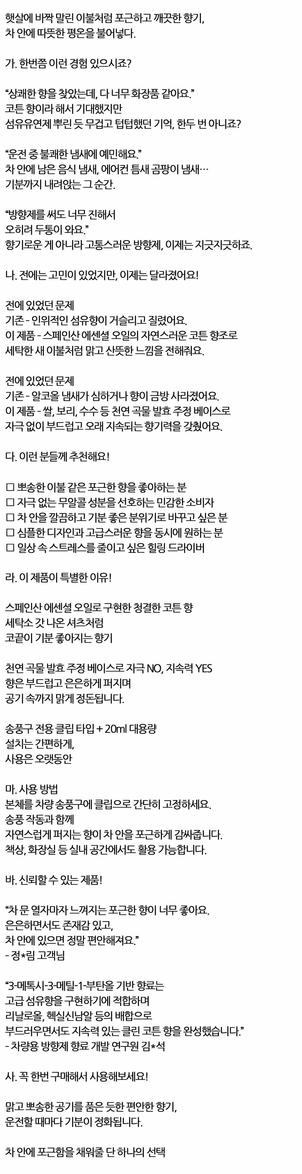 차안에 포근함을 채워줄 자동차 송풍구형 방향제 20ml