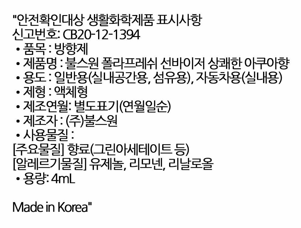 맑고 청량한 아쿠아향 햇빛가리개 클립형 방향제 4ml