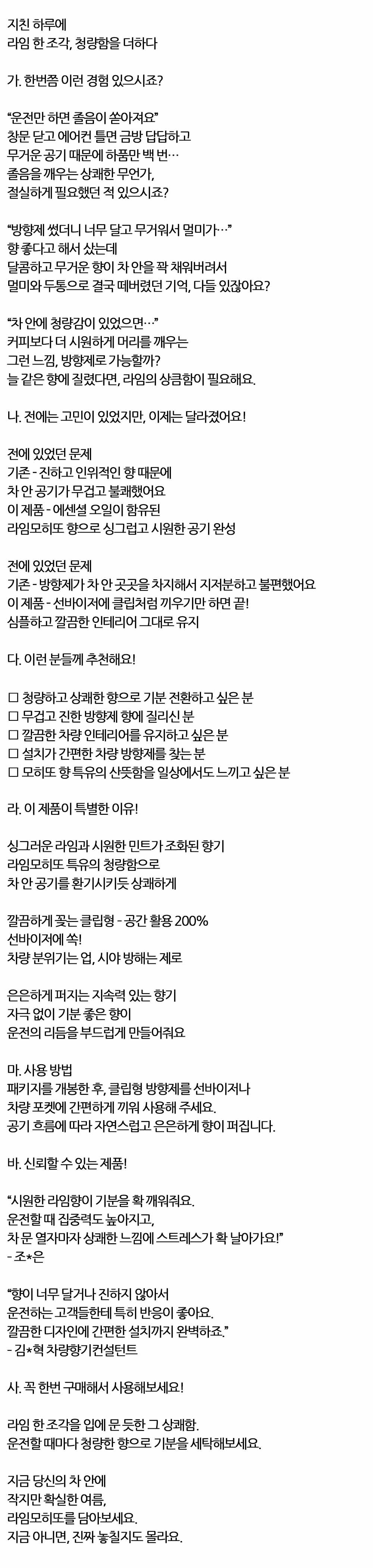 특유의 산뜻함 모히또향 햇빛가리개 클립 방향제 4ml