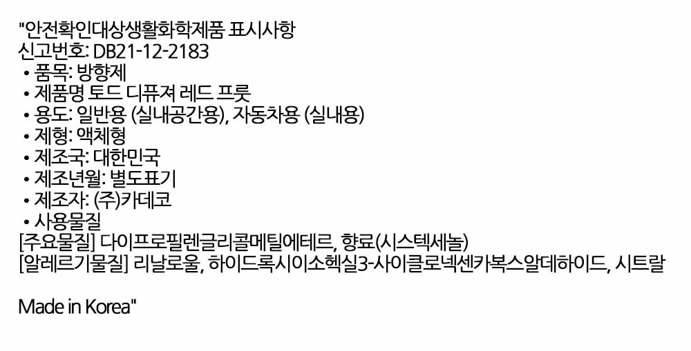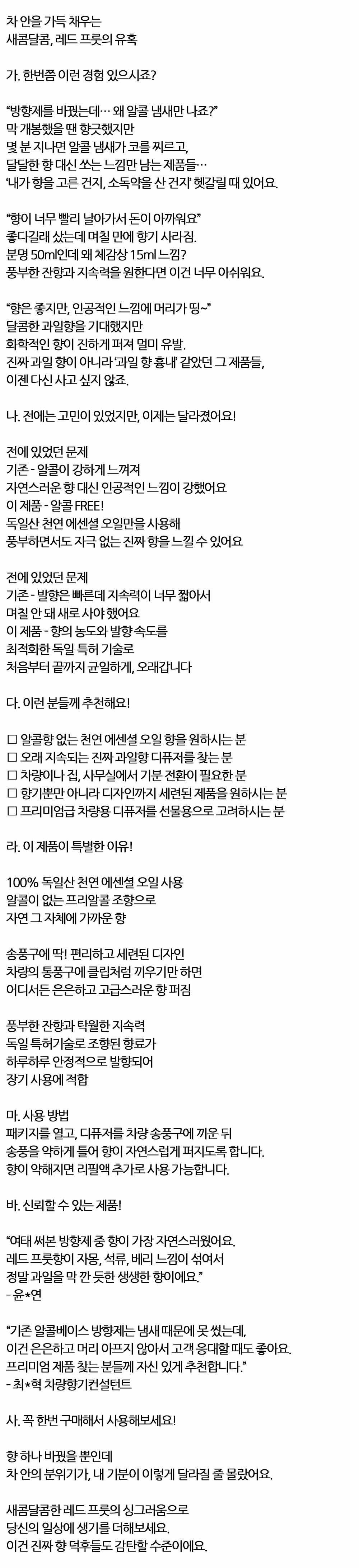 새콤달콤한 레드프룻향 자동차 송풍구형 디퓨져 50ml